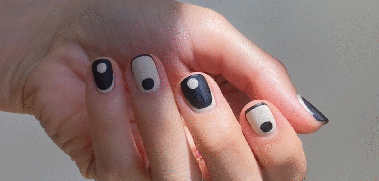 Try this look: Paint your nails a solid color and add white or black dots using a toothpick for a cute polka dot manicure.